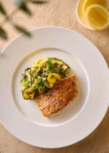 Mains arrive as shared centrepieces, encouraging diners to linger and connect. The menu features tender Lamb Chops with skordalia and oregano, Grilled Red Snapper Fillet with courgette and almond gremolata, and Gemista Risotto layered with tomato, herbs, and whipped feta. Each dish reflects Avli’s Mediterranean roots while offering the comforting familiarity many seek after a day of fasting.