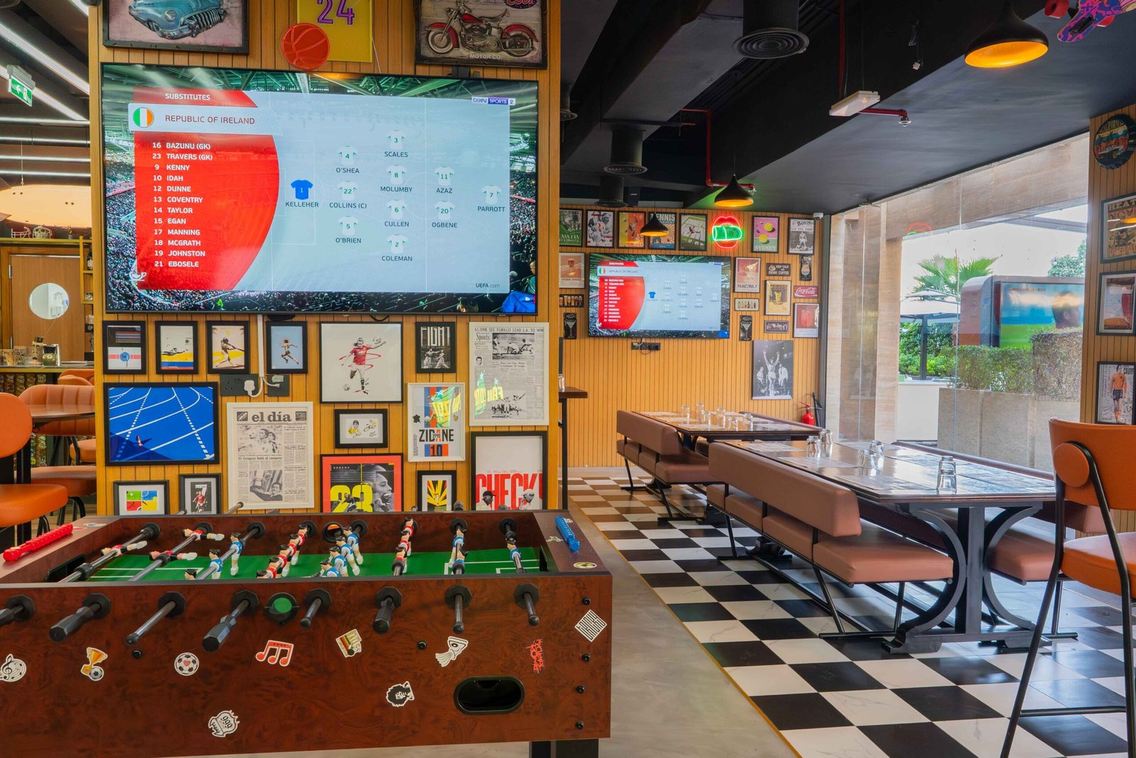 • Giant HD screens, immersive sound, and live DJs ensure a vibrant social hub for every major match day.