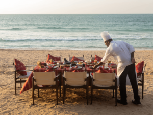 Offer: A private beach table experience for groups of 10 or more, featuring a curated sharing-style menu by the sea.