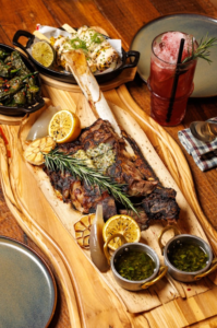 The culinary spread is designed for leisurely grazing, blending classic American delicacies with interactive live stations. Guests can choose one starter and one main per person, ranging from zesty Latin inspired empanadas to sliders and pizzas. Desserts arrive at the table for sharing, ensuring a sweet communal finish to the meal. Younger cowboys and cowgirls have their own dedicated menu featuring mac and cheese, burgers, and chicken tenders.