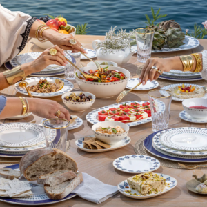 Offer: The “Azure Collection,” featuring delicate gold accents and geometric patterns inspired by Middle Eastern traditions, perfect for Ramadan hosting and Suhoor table settings.
